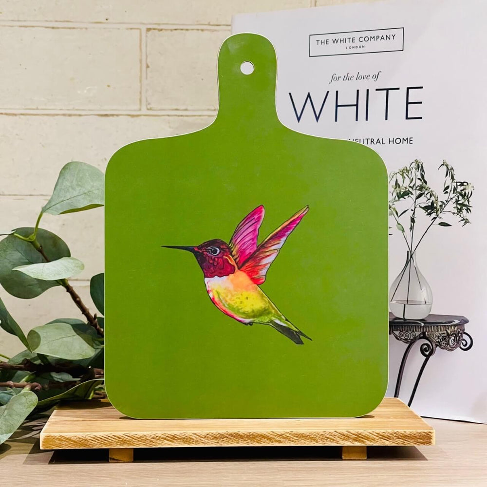Handmade in Britain, this mini chopping board is decorated with a beautiful Hummingbird illustration, designed by artist Emily Smith. Constructed of premium quality wood, this board is perfect for everyday kitchen tasks due to its durable and hygienic construction. Enjoy your cooking with Hermione the Hummingbird and add a touch of style to your kitchen.
