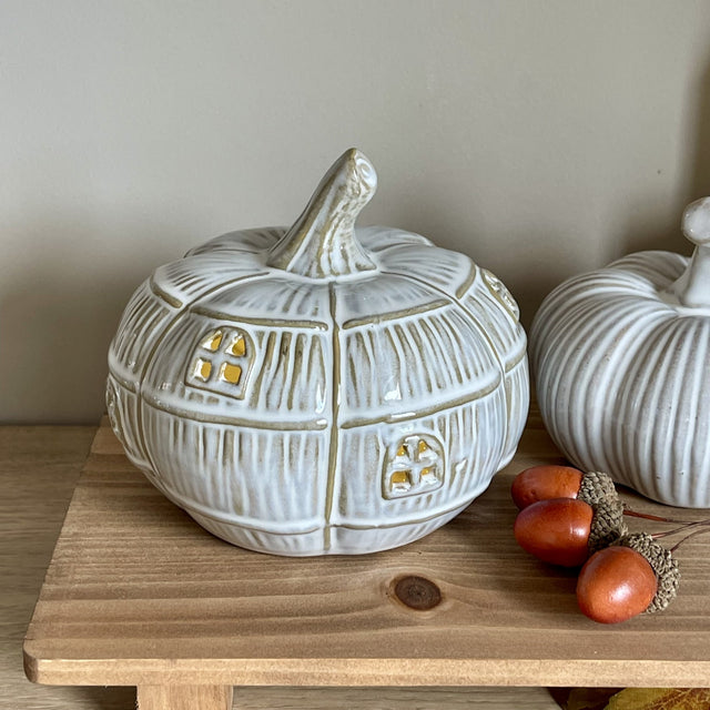 Unleash the magic of the cosy Autumn season with this LED Ceramic Pumpkin House. Its reactive glaze finish adds a touch of enchantment to any room.