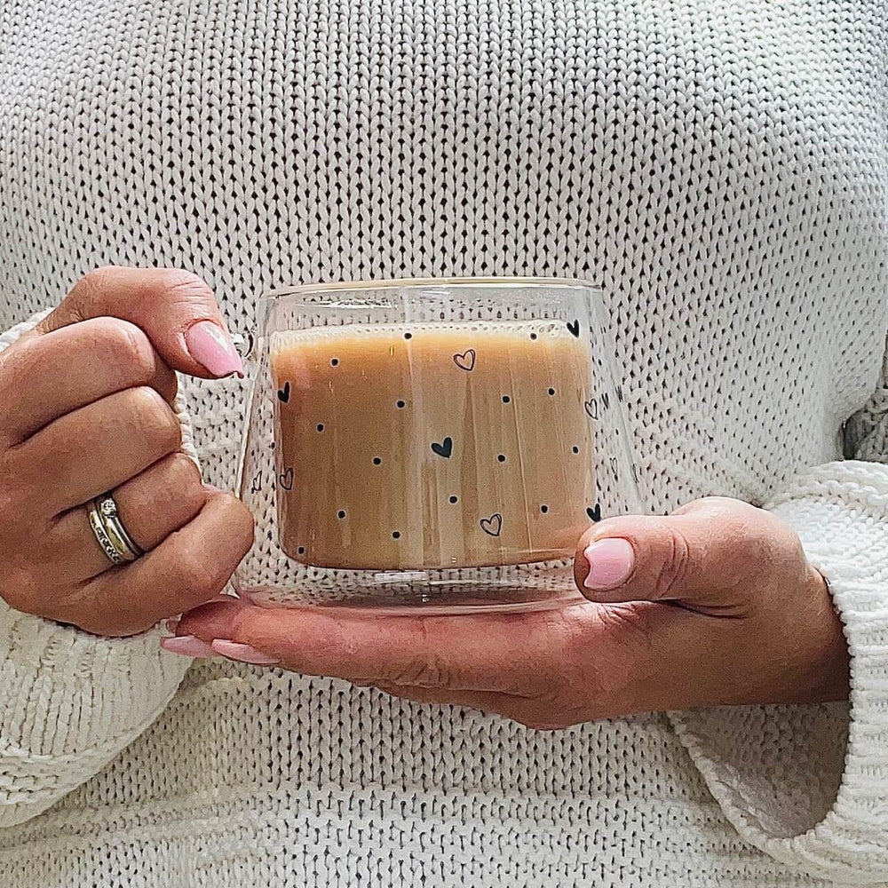 These Double Wall Glass Mugs feature a delightful heart and dot design that will make your drinks look as good as they taste! Perfect for sipping with a smile! The Double Wall Design ensures your hot drinks stay warm and your cold drinks stay cold.