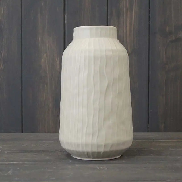 Enhance any room with this Glazed Pistachio Vase. The unique wave texture and soft pistachio stripes add an elegant touch to your home decor. Perfect for any floral arrangement and a must-have for any home.