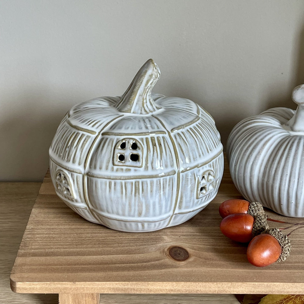 Unleash the magic of the cosy Autumn season with this LED Ceramic Pumpkin House. Its reactive glaze finish adds a touch of enchantment to any room.