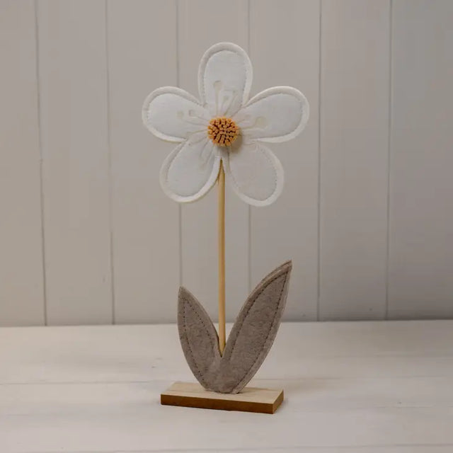 Felted cream flower mounted on a natural wooden base. A refined, low-maintenance decorative accent that complements contemporary interiors with understated elegance and lasting appeal.